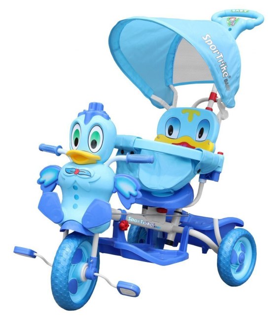 3-kołowy Rowerek dla dzieci Kaczka Niebieski + Dźwięki + Daszek + Barierka + Podnóżek + Rączka + Schowek