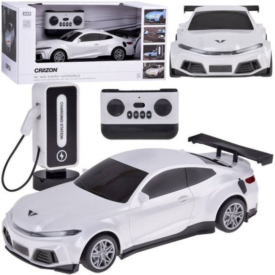 Elektryczny samochód wyścigowy o pięknym perłowym kolorze, sterowny na pilota zapewni godziny emocjonującej zabawy. Samochód idealnie odwzorowuje aktualnie najnowszą technologię samochodów elektrycznym na rynku samochodowym. Każdy mały fan motoryzacji na pewno będzie zadowolony mogąc mieć takie auto w swojej kolekcji. Auto zdalnie sterowane na pilota ze specjalną stacją ładującą jak prawdziwe pojazdy elektryczne. Magia kolorowych świateł i wielu fantastycznych funkcji które posiada ten pojazd zachwyci nie jednego dziecko.