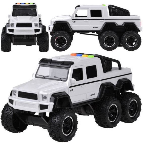 Terenowe auto do zadań specjalnych to zabawka, która zachwyci każdego młodego kierowcę. Samochód z samodzielnym napędem wystarczy położyć autko na ziemi, wycofać i puścić bez odrywania od podłoża, a autko nabiera rozpędu i jedzie do przodu! Super samochód idealny do wspaniałej zabawy dla twojego dziecka. Dzięki efektom dźwiękowym i świetlnym zapewni radość i wyśmienitą zabawę na długie godziny. Samochód wyposażony jest w aż 6 kół (siódme na bagażniku) na dużych bieżnikowanych oponach, dlatego podłoga w mieszkaniu będzie bezpieczna, a przeszkody nie będą miały znaczenia.