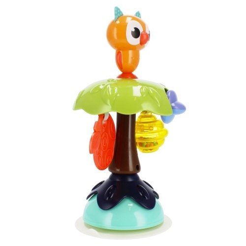 SOWA EDUKACYJNA na PRZYSSAWKĘ Bam Bam to zabawka edukacyjna przeznaczona dla maluchów od 6 m-ca. Postać uroczej sówki osadzona jest na karuzeli i obracającej się, dwukolorowej platformie. W wyniku obrotu platforma wydaje delikatne, turkocząco- grzechoczące dźwięki, a kolorowe zabawki pod parasolem karuzelki, z kuleczkami we wnętrzu , również swoiście grzechoczą wprawiając malucha w stan rozbawienia. Subtelna i zróżnicowana kolorystyka absorbuje uwagę dziecka aktywizując jego zmysły wzroku, dotyku, słuchu, a możliwość obracania karuzełki i pociągania za zawieszone na niej zabawki, doskonali zdolności manualne dziecka. Przyssawka osadzona pod zabawką zapewnia stabilne mocowanie do blatu stolika, tacki wózka czy krzeska do karmienia. Wymiary/waga/baterie: wymiary produktu (szer. x wys.)[cm]: 7x20, wymiary opakowania (dł. x wys. x gł.)[cm]: 14x26x12, waga produktu bez opakowania [kg]: 0,17 kg, waga produktu w opakowaniu [kg]: 0,24 kg, nie wymaga zasilania bateriami. Zabawka przeznaczona dla dzieci w wieku: 6m+. Pakowana w otwarty kartonik.