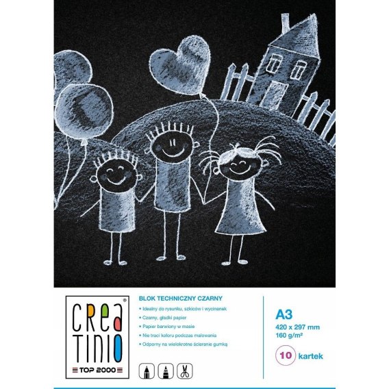 Blok techniczny szkolny A3 czarne kartki 10 kartek 160g 400079854 CREATINIO