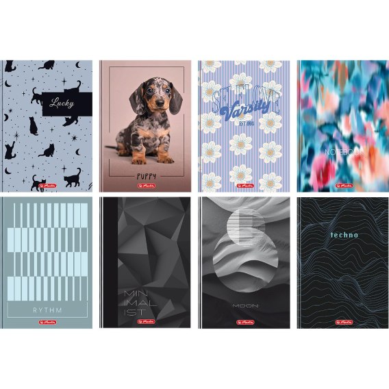 - Mix ośmiu atrakcyjnych wzorów pozwala dopasować brulion do indywidualnych upodobań