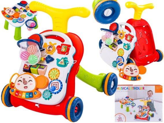 - Możliwość zamontowania kosza zarówno na stoliku, jak i do pchacza,