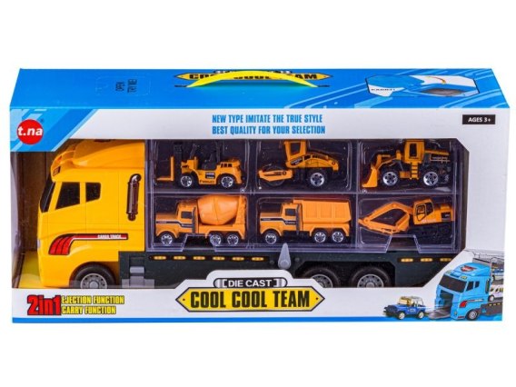 Wielofunkcyjna ciężarówka będzie świetnym prezentem dla małego fana motoryzacji. Konstrukcja tego pojazdu oraz dołączone do zestawu pojazdy budowlane sprawiają, że można je wykorzystać w zabawie na wiele różnych sposobów. Ciężarówka może pełnić funkcję garażu, lawety, transportera lub wyrzutni.