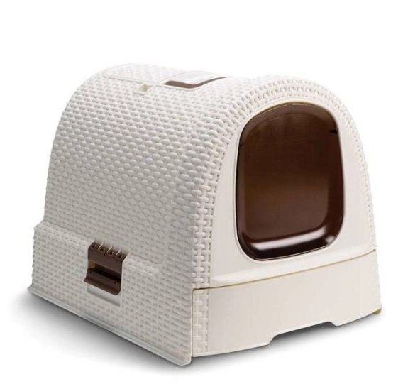 Toaleta dla kota ze schowkiem na akcesoria do sprzątania kuwety oraz filtrem, w kolorze kremowo-beżowym. Wymiary 51x38,5x40cm.