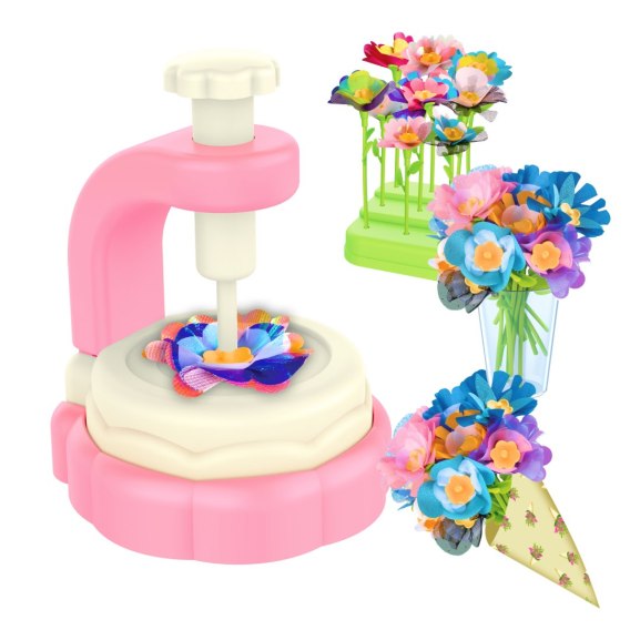 Wkrocz do kolorowego świata wiecznej wiosny! Projektuj kwiatki i komponuj z nich barwne bukiety, tworząc małe dzieła sztuki. Wybierz płatki, umieść je w maszynce, a następnie połącz płatki ze środkiem oraz szypułką. Teraz wystarczy już tylko dodać łodygę i uroczy kwiatek gotowy! Zabawkowe roślinki możesz wyeksponować w dołączonym do zestawu wazoniku, stojaku lub, umieszczając je w papierowym rożku, stworzyć z nich bukiet. Te piękne ozdoby sprawdzą się też wspaniale w charakterze prezentu dla bliskiej osoby.