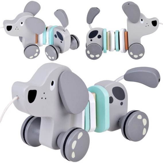 Drewniany Piesek - Zabawka do ciągnięcia na sznurku Szary pies ZA5376