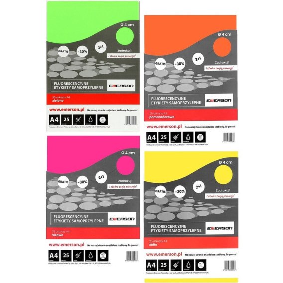 Etykiety Emerson A4 śr.40mm pomarańczowe (25)
