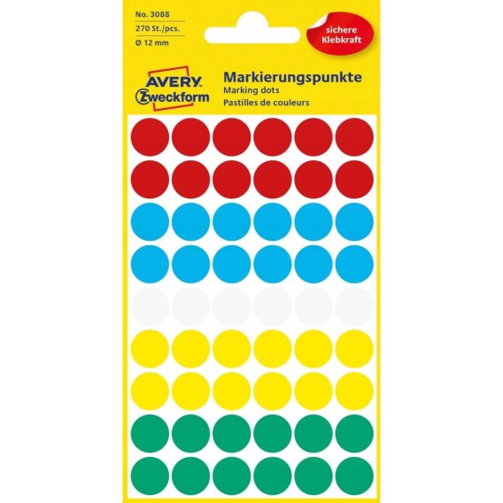 Etykiety kółka Q12mm 270szt.trwałe mix 3088 AVERY ZWECKFORM