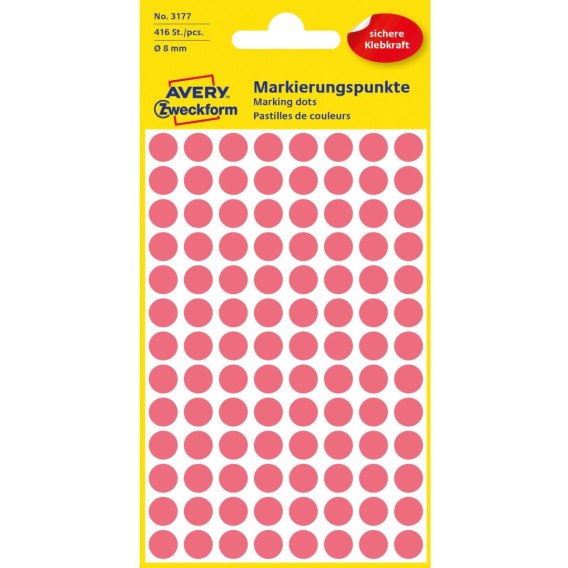Etykiety kółka Q8mm neon czerwony 416szt 3177 AVERY ZWECKFORM