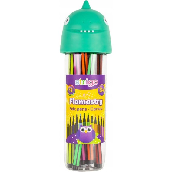 Flamastry STRIGO Dinozaur w 12 glebokich intensywnych kolorach to produkt, który pokocha kazdy, od pierwszego uzycia, poniewaz są one uniwersalnym narzedziem plastycznym.
