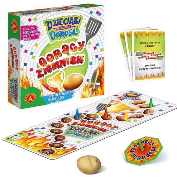 Gorący Ziemniak stał się już kultową grą i obowiązkową pozycją w domowej biblioteczce gier i zabaw. Tym razem Aleksander stworzył nową edycję tej wyjątkowej gry- Dzieciaki kontra dorośli, zawierającą 440 nowych pytań w dwóch kategoriach kart: jedna przygotowana specjalnie przez dzieci, druga przez dorosłych.