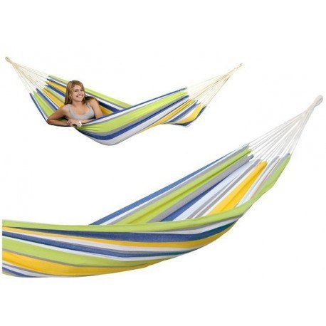 Brazylijski hamak jednoosobowy TAHITI - Kolibri Tahiti to połączenie żywych kolorów oraz wyjątkowo miękkiej i delikatnej w dotyku, a jednocześnie niezwykle grubej i wytrzymałej przędzy. Tahiti stanowi dowód na to, że nawet nieco mniejszy hamak potrafi być naprawdę wygodny! AMAZONAS Amazonas Hängematten GmbH to Niemiecka firma produkująca oryginalne hamaki, huśtawki, nosidełka oraz stojaki już od 1995 roku. Bazując na doświadczeniu i staranności wykonania, otrzymujemy produkty o najwyższej jakości i w unikalnych wzorach. Charakterystyka bardzo estetyczny wysoka jakość wykonania niezwykle miły, komfortowy i wytrzymały materiał idealny do zawieszenia zarówno w ogrodzie jak i na tarasie Akcesoria do zawieszenia hamaka dostępne są w naszym sklepie (nie są dołączone do produktu). Dane techniczne powierzchnia leżenia: około 200 x 100 cm długość całkowita: około 310 cm waga produktu: około 1 kg maksymalne obciążenie: do 120kg Polecane sposoby montażu za pomocą haka ściennego z karabińczykiem EASY+ (do kupienia w naszym sklepie) za pomocą liny Smartrope do wieszania hamaków na drzewach (do kupienia w naszym sklepie) AZ-1013113