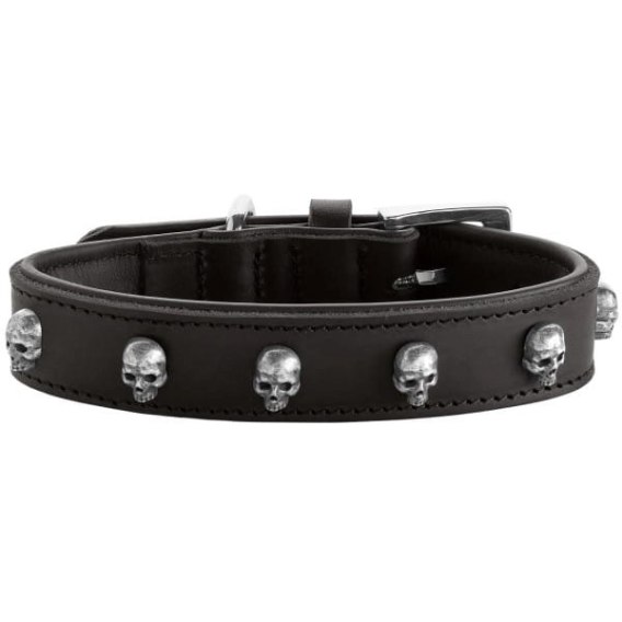 Obroża jest ozdobiona starannie odlewanymi czaszkami, które nadają jej niepowtarzalny charakter. Dzięki bezstopniowej regulacji, łatwo dopasujesz ją do indywidualnych potrzeb swojego psa. Wzmocnienie pomiędzy warstwami skóry zapewnia stabilność i minimalizuje ryzyko poluzowania się ozdób.
