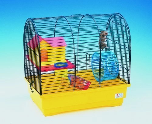 Klatka dla małych gryzoni (chomik, mysz, szczur). Dzięki odpinanej kuwecie klatkę łatwiej wysprzątać. Elementy klatki wykonane są z nietoksycznego plastiku. Górna część klatki wykonana jest z metalowych prętów pokrytych nietoksyczną farbą.
