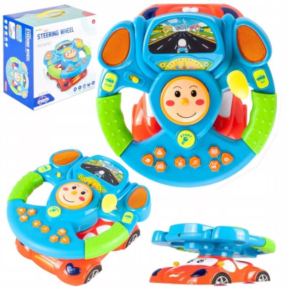 Zabawka dla dziecka, które cały czas „prowadzi" jak tata. Ta kierownica pozwala maluchowi naśladować prawdziwą jazdę autem: skręca, włącza kierunkowskazy, odpala silnik, zmienia biegi, trąbi, a na dodatek świeci i gra. Jest projektor z pandą w samochodzie, są dźwięki pojazdów uprzywilejowanych, są melodyjki - dokładnie to, co dzieci lubią wciskać. Przyssawki pod spodem sprawiają, że nie ucieka ze stołu.