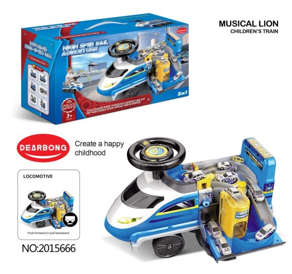 |  | Interaktywny jeździk - lokomotywa z parkingiem policyjnym i efektami dźwiękowymi oraz świetlnymi to propozycja dla dzieci od 3-go roku życia. Zabawka wykonana została z wysokiej jakości, wytrzymałego i nietoksycznego tworzywa sztucznego. Lokomotywa posiada 6 kół w tym dwa przednie skrętne. Pod siedzeniem znajduje się rozkładany parking policyjny ze zjeżdżalniami, ruchomą windą, otwieranym szlabanem, podnośnikiem oraz obrotowym kółkiem. Wszystkie ruchome elementy sterowane są ręcznie. Pod parkingiem jest dodatkowo schowek na skarby dziecka. Również z przodu lokomotywy mamy otwieraną szybkę przednią z wolną przestrzenią na różne drobnostki. Boki lokomotywy wyposażono w  wysuwane podnóżki dla dziecka.  Zabawka zasilana jest bateriami typu 2 x 1,5V AA - kierownica oraz bateriami typu 2 x 1,5V AA - panel dźwiękowy, w zestawie brak baterii. W kierownicy umiejscowiono przycisk uruchamiający kolorowe migające światełka. Z tyłu lokomotywy jest natomiast panel dźwiękowy z przyciskami po naciśnięciu, na które słychać melodie, opowiadania oraz odgłosy zwierząt. Lektor posługuje się językiem angielskim. Lokomotywa ma świecące światełka przednie.   Funkcje: - przycisk świetlny w kierownicy - migające różnokolorowe światełka, - panel muzyczny z tyłu lokomotywy z muzyką, opowiadaniami i odgłosami zwierząt, - świecące światła przednie, - stabilna konstrukcja,  - 6 kółek, - ruchoma kierownica, - ruchome koła przednie, - rozkładany parking pod siedzeniem, - ruchome elementy parkingu, sterowane ręcznie - winda, szlaban, podnośnik, obrotowe kółko, - schowek na drobiazgi pod parkingiem i na przodzie lokomotywy pod szybką imitującą przednią szybę lokomotywy, - wysuwane podnóżki po bokach jeździka. |