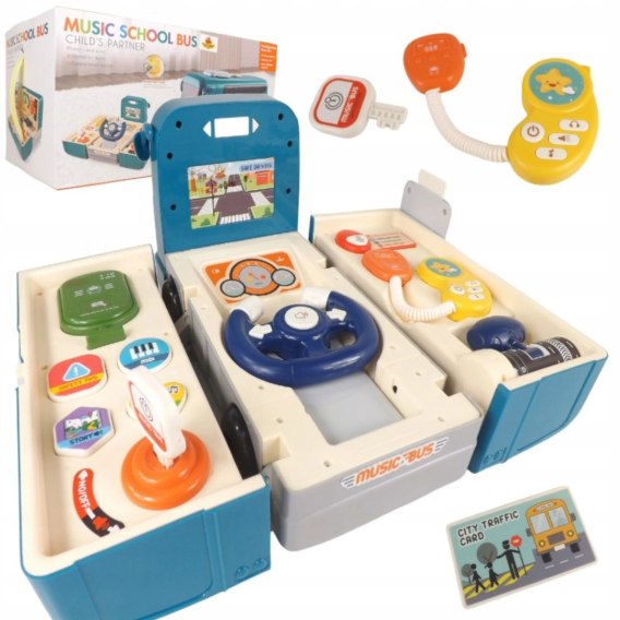 Interaktywny bus to wielofunkcyjna zabawka, która bawiąc uczy. Poprzez zabawę dziecko uczy się logicznego myślenia oraz stawia pierwsze kroki w roli kierowcy.
