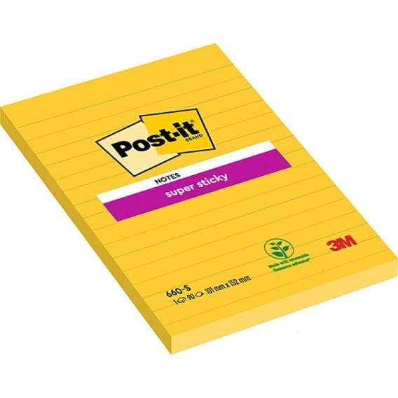 KARTECZKI POST-IT SUPER STICKY 102x152mm ŻÓŁTE (75)
