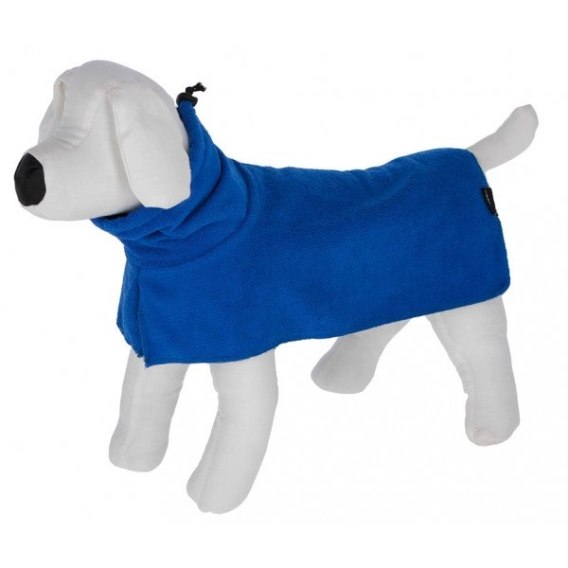 Szlafrok dla psa o długości 30cm, w kolorze niebieskim.