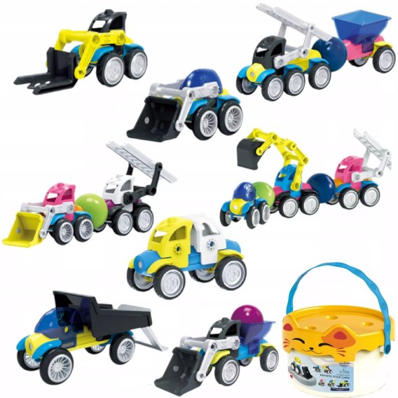 Odkryj innowacyjny zestaw magnetycznych klocków konstrukcyjnych, który przeniesie Twoje dziecko w fascynujący świat motoryzacji i budownictwa! Ten wszechstronny produkt pozwala na tworzenie niezliczonej liczby pojazdów - od potężnych koparek po szybkie wywrotki.