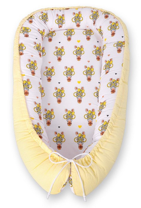 Kokon niemowlęcy dwustronny kojec otulacz Premium BOBONO- zebry żółte