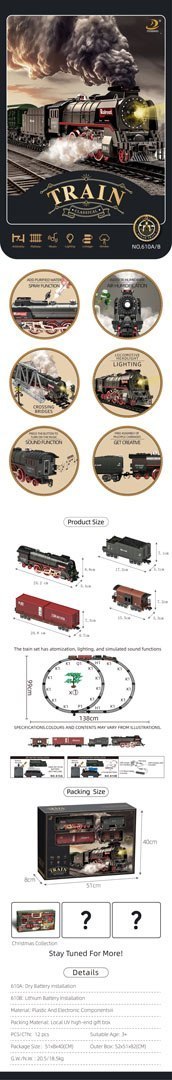 Kolejka Retro z Funkcją Świateł, Dźwięku i Dymu 138cm