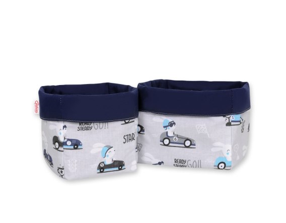 Komplet koszyczków na komodę 2szt. - zające w autkach szare