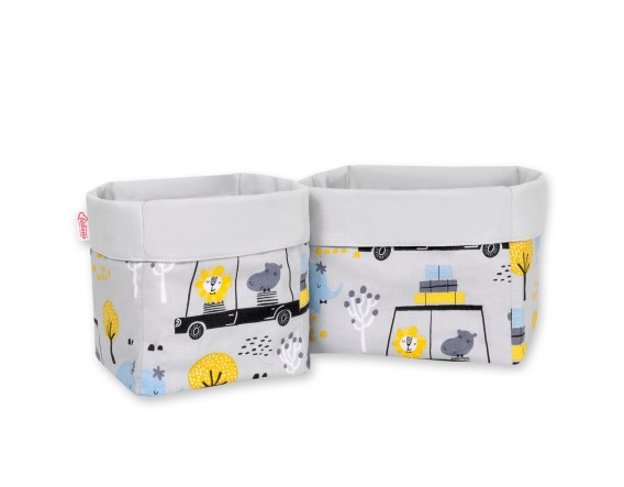 Komplet koszyczków na komodę 2szt. - zwierzątka w autkach szare