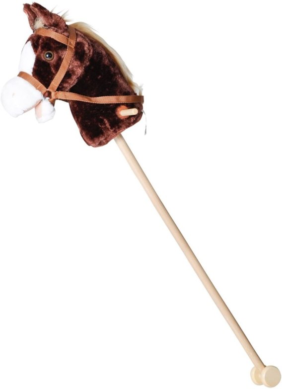 Pluszową głowę konika przyczepiono bezpośrednio do drewnianego kija. Producent dodatkowo wyposażył zabawkę w drewniane uchwyty oraz kółeczko znajdujące się na zakończeniu kijka pozwalając na wygodniejszą obsługę.