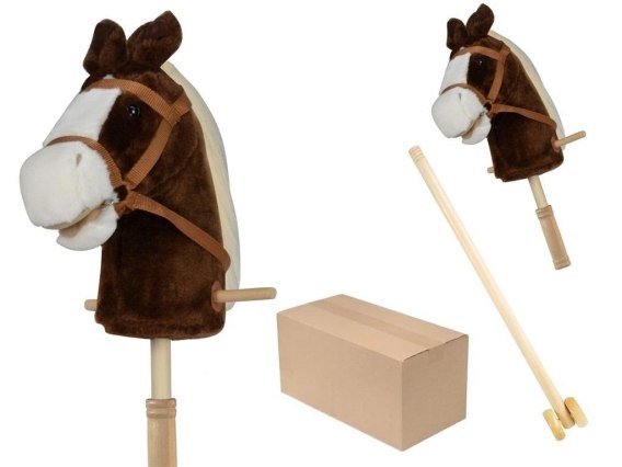 Koń z dźwiękiem drewniany kij z kółkami brązowy