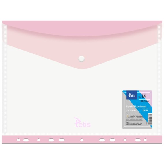 Koperta A4 PP na zatrzask z perforacją RÓŻOWA BT614-R TETIS