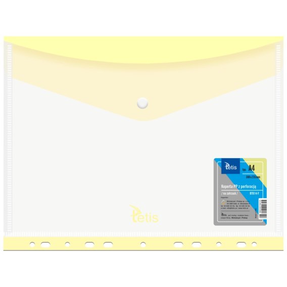 Koperta A4 PP na zatrzask z perforacją ŻÓŁTA BT614-Y TETIS