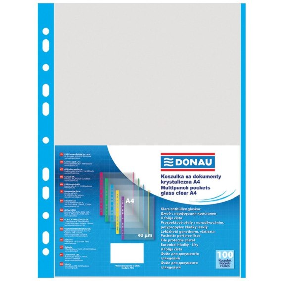 Koszulki Donau A4/40µm (brzeg niebieski) groszkowe (100)