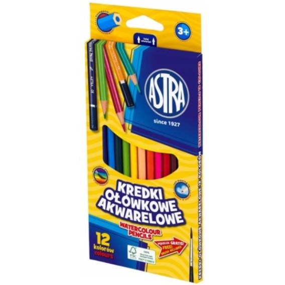 Kredki akwarelowe 12 kolorów ołówkowe heksagonalne 312110004 ASTRA
