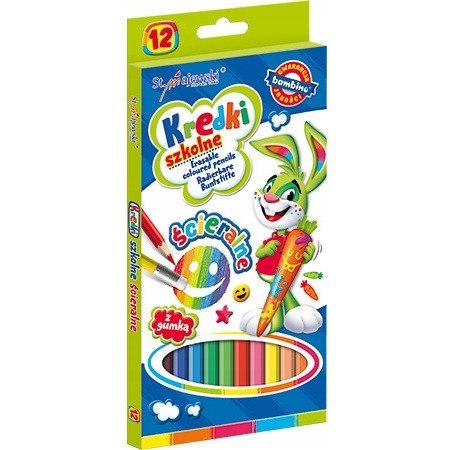 Kredki ŚCIERALNE olówkowe BAMBINO 12 kolorów