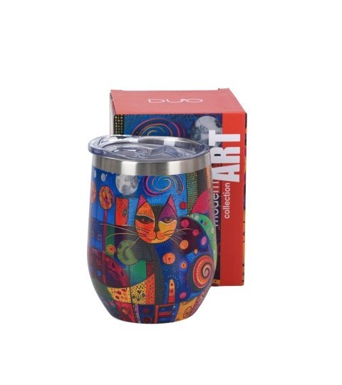 Kubek termiczny CAT wchodzący w skład serii MODERN, wykonany ze stali nierdzewnej 18/8, doskonały do zimnych i ciepłych napojów zabieranych do pracy, szkoły czy na podróż.