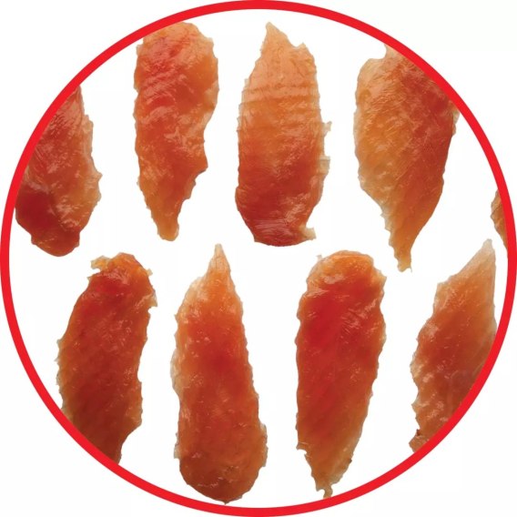 FILETY Z PIERSI KURCZAKA MIĘKKIE - SOFT dla psów i kotów (karma uzupełniająca), wyprodukowane poprzez suszenie 100% świeżego mięsa kurczaka. Przechowywać w temp. poniżej 20°C i wilgotności względnej powietrza do 60%. Chronić przed bezpośrednim promieniowaniem słonecznym. Po otwarciu opakowania można przechowywać w lodówce. Produkt nie do spożycia przez ludzi.