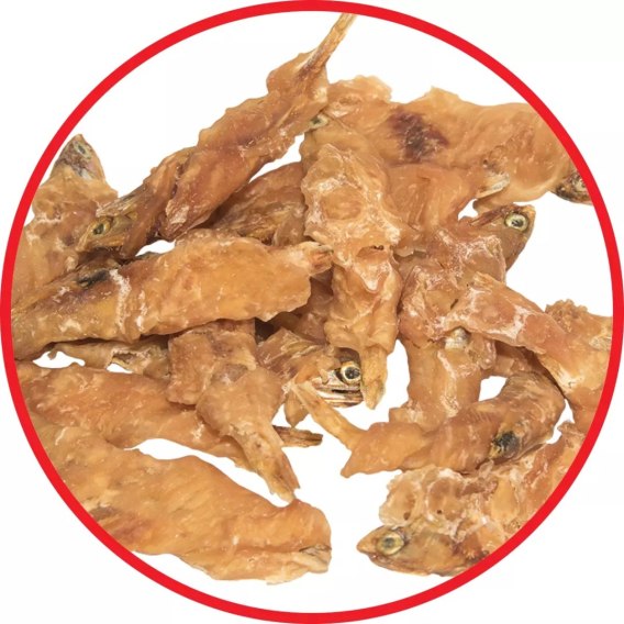 CHICKEN WRAPPED FISH - rybka owinięta kurczakiem - przysmak dla psów bez konserwantów chemicznych (karma uzupełniająca). Przechowywać w temp. poniżej 20°C i wilg. wzgl. powietrza do 60%. Chronić przed promieniowaniem słonecznym. Po otwarciu opakowania można przechowywać w lodówce. Wewnątrz opakowania - saszetka z odtleniaczem - nie do spożycia. Produkt nie do spożycia przez ludzi.