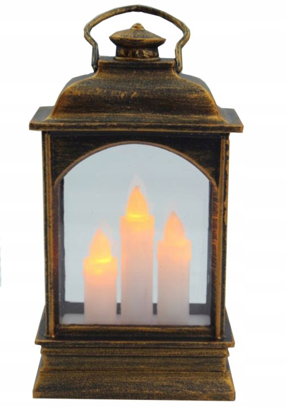 Lampion 12szt. ozdobna plastikowa led z trzema świecami stare złoto 13x5x5cm | AE-8701