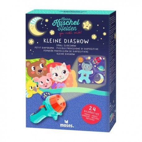 Latarka, Mini Projektor, Słodkie Sny Wspaniały prezent, niezwykły pokaz, który możesz przenieść do pokoju dziecinnego za pomocą latarki - projektora. W tym celu należy włączyć latarkę, wsunąć kółeczko z przeźroczami w szczelinę powstałą po odciągnięciu ruchomej części i skierować na ścianę w zaciemnionym pokoju. Pokaz slajdów z małymi pluszowymi bohaterami zamienia bajkę na dobranoc w interaktywną zabawę! Za pomocą małego projektora można opowiedzieć w sumie trzy historie z ośmioma obrazami: Słodkie Sny, Pory Roku, Czas Spać. Przyglądając się uroczym zwierzakom i słuchając zaczarowanej opowieści, dzieci z pewnością szybko się zmęczą, a ich powieki będą powoli opadać. Niezastąpiony w pokoju dziecięcym, wzbogacenie wieczornego rytuału i wspaniały prezent! Niezwykły pokaz, 3 historie na dobranoc. Wyświetla 24 obrazy (3 kółeczka z 8 przeźroczami). Regulacja ostrości (pokrętło na froncie latarki). Idealna widoczność. Konieczne baterie - 2 szt. AAA. Baterie nie są dołączone do zestawu. Wymiary projektora: 14 cm x 4 cm x 4 cm. Wymiary opakowania: 14 cm x 19 cm x 6,5 cm. Kategoria wiekowa: 3+. UWAGA! Przeznaczony dla dzieci powyżej lat 3. UWAGA! Nigdy nie świecić bezpośrednio w oczy. Produkty Moses są projektowane w Niemczech, ze szczególną dbałością o zrównoważony rozwój dziecka i wykonane z wysokiej jakości materiałów. Zabawki są wytwarzane zgodnie z filozofią "nauka przez zabawę", aktywnie wspierają i stymulują zarówno wyobraźnię jak i edukację dziecka. M-38169