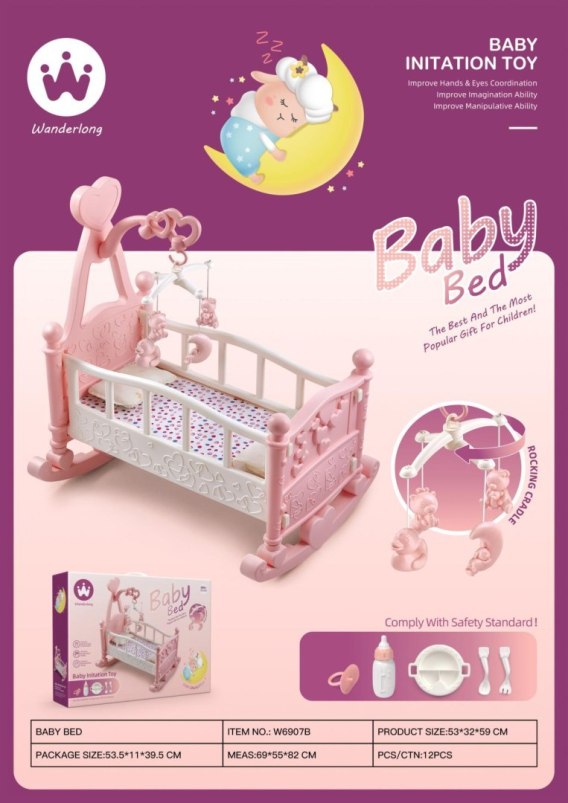 Łóżeczko Kołyska dla Lalek dla dzieci 3+ Zestaw do opieki nad lalkami + Akcesoria 9 el.