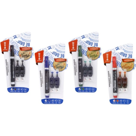 * marker nadaje się do ponownego uzupełnienia dedykowanym do tego, załączonym tuszem, dzięki czemu jest bardziej ekologiczny i ekonomiczny