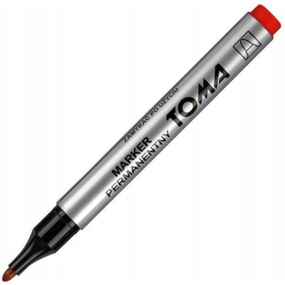 Marker permanentny czerwony, okrągła końcówka TO-090 TOMA