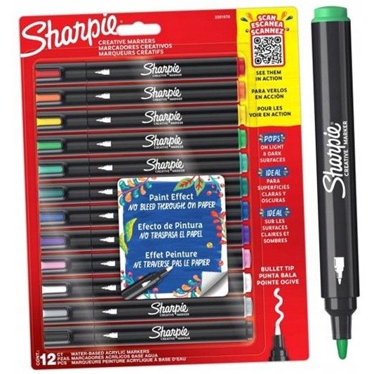Markery artystyczne akrylowe SHARPIE (12 kolorów) 2201070