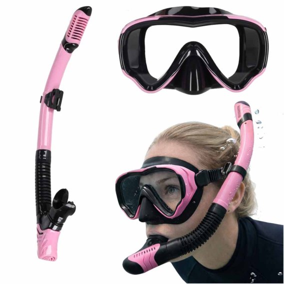 Maska do snurkowania okulary rurka fajka zestaw różowo-czarny