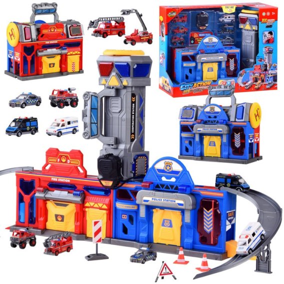Duży garaż, który łączy ze sobą posterunek policji oraz jednostkę straży pożarnej. Zabawka posiada wiele atrakcji i zapewni mnóstwo godzin niesamowitej zabawy.