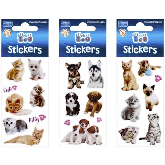 Naklejki STICKER BOO z grafiką z Psami i Kotami z pewnością przypadną do gustu dzieciakom, idealne do zdobienia rysunków, wszelkiego rodzaju prac plastycznych oraz kolekcjonowania. Dostepne w 3 odslonach graficznych.