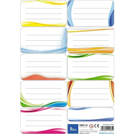 Naklejki na książki i zeszyty 9szt na arkuszu (25ark) KN001-02 TETIS