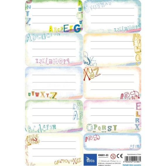 Naklejki na książki i zeszyty 9szt na arkuszu (25ark) KN001-03 TETIS